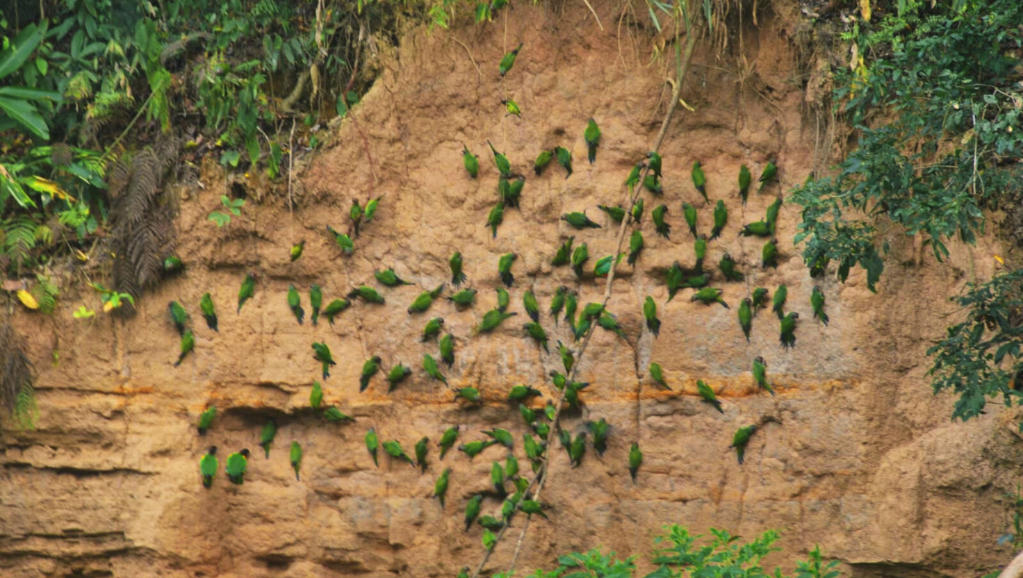 Despertamos a las 5:30h para tomar un café o infusión caliente antes de salir para una caminata de 20 minutos aproximadamente hasta llegar a la collpa de loros, donde podrán observar entre 3 a 5 especies de loros, que bajan a comer de una arcilla especial que se encuentra en algunas zonas de esta región. Esto es indispensable para el metabolismo de las aves y un espectáculo de color realmente maravilloso y emocionante.